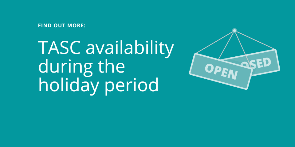 The TASC Office closes 23 December 2025 and reopens 5 January 2026.