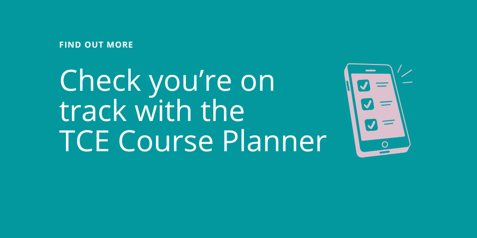 The TCE achievement checklist and the TCE Course Planner are great tools to plan your studies, including checking you are on track for the TCE standards and credit points needed for your future pathway: